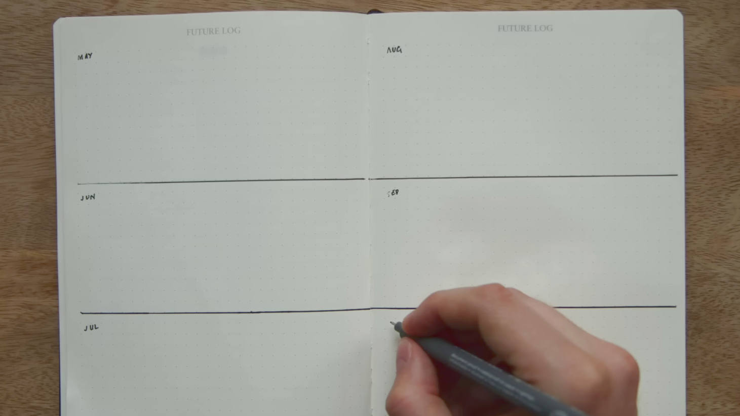 Prvi razpon strani za kazalom posvetite dnevniku prihodnosti. Naslovite ju in obe polovici razdelite na tri dele z vodoravnimi črtami. V vsakega izmed njih napišite ime meseca, pri čemer začnete s prihodnjim mesecem (trenutni mesec bo dobil svoje mesto v mesečnem dnevniku). Sem boste pisali dogodke iz daljne prihodnosti, ki ne spadajo v trenutni mesec. Dnevnik prihodnosti vnesite na kazalo, na primer kot Dnevnik prihodnosti: 5